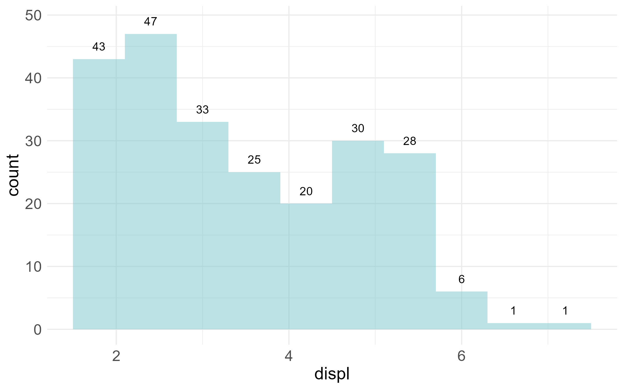 mapping = aes(x = displ)) +