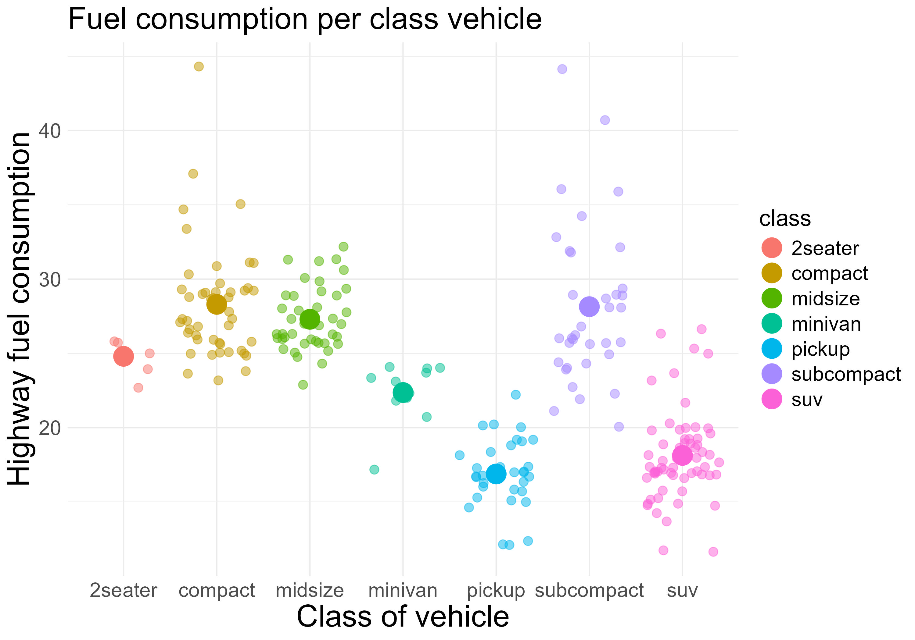 geom_point(data = mean_hwy_data, aes(y = mean_hwy), size = 7) +